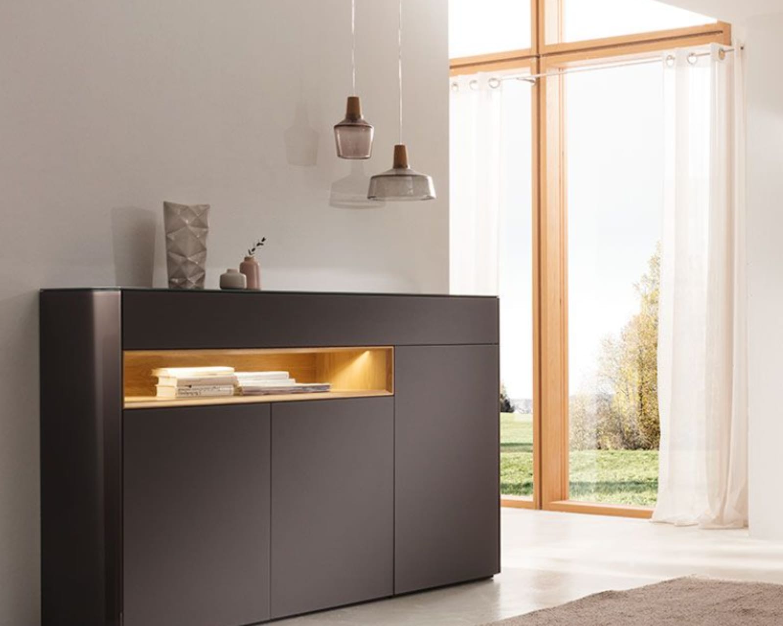La conception du nouveau NARA est très délicate et répond aux besoins de vie d'aujourd'hui. Les nombreuses possibilités de combinaison avec les façades en bois, vernis et verre ne laissent rien à désirer. Les bardeaux en bois surprenants s'insèrent dans des combinaisons élégantes et créent un look émotionnel.