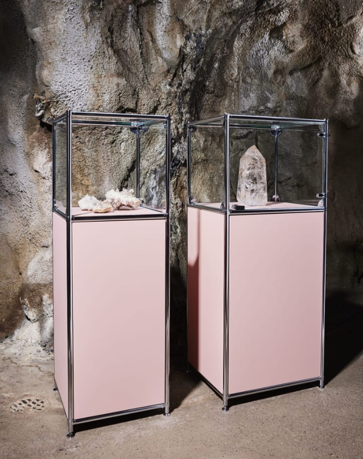 Choisissez vos meubles individuels parmi différents matériaux et options de combinaison. Le système de support modulaire se compose d'éléments de connexion en fonte chromée, précis et de haute qualité.