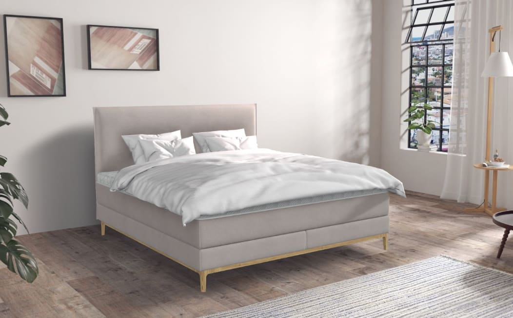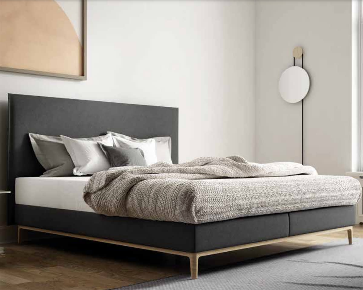 Toujours géométrique – Flims, en tant que lit à sommier tapissier, est à la fois moderne et élégant. Le langage des formes géométrique et clair de la tête de lit confère au lit son caractère distinctif. Pour donner à Flims une touche personnelle, vous pouvez choisir parmi des tissus et des pieds de lit de haute qualité. Le lit à sommier tapissier s'intègre parfaitement harmonieusement dans l'ameublement de votre chambre et devient un refuge absolu.