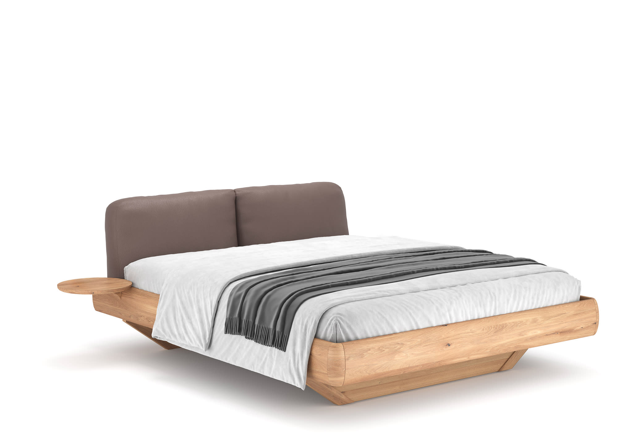 lit Silvan de la collection Naturally Sleeping de Wimmer est disponible en hêtre rouge, en chêne noueux rustique ou en chêne noueux Bianco. Le revêtement de la tête de lit est personnalisable. La hauteur des longerons est proposée en 44 ou 50 cm. La profondeur d'encastrement du sommier à lattes et du matelas est également variable. Le dos de la tête de lit est recouvert d'un tissu extensible, mais peut aussi être réalisé dans le tissu d'ameublement sur commande spéciale.