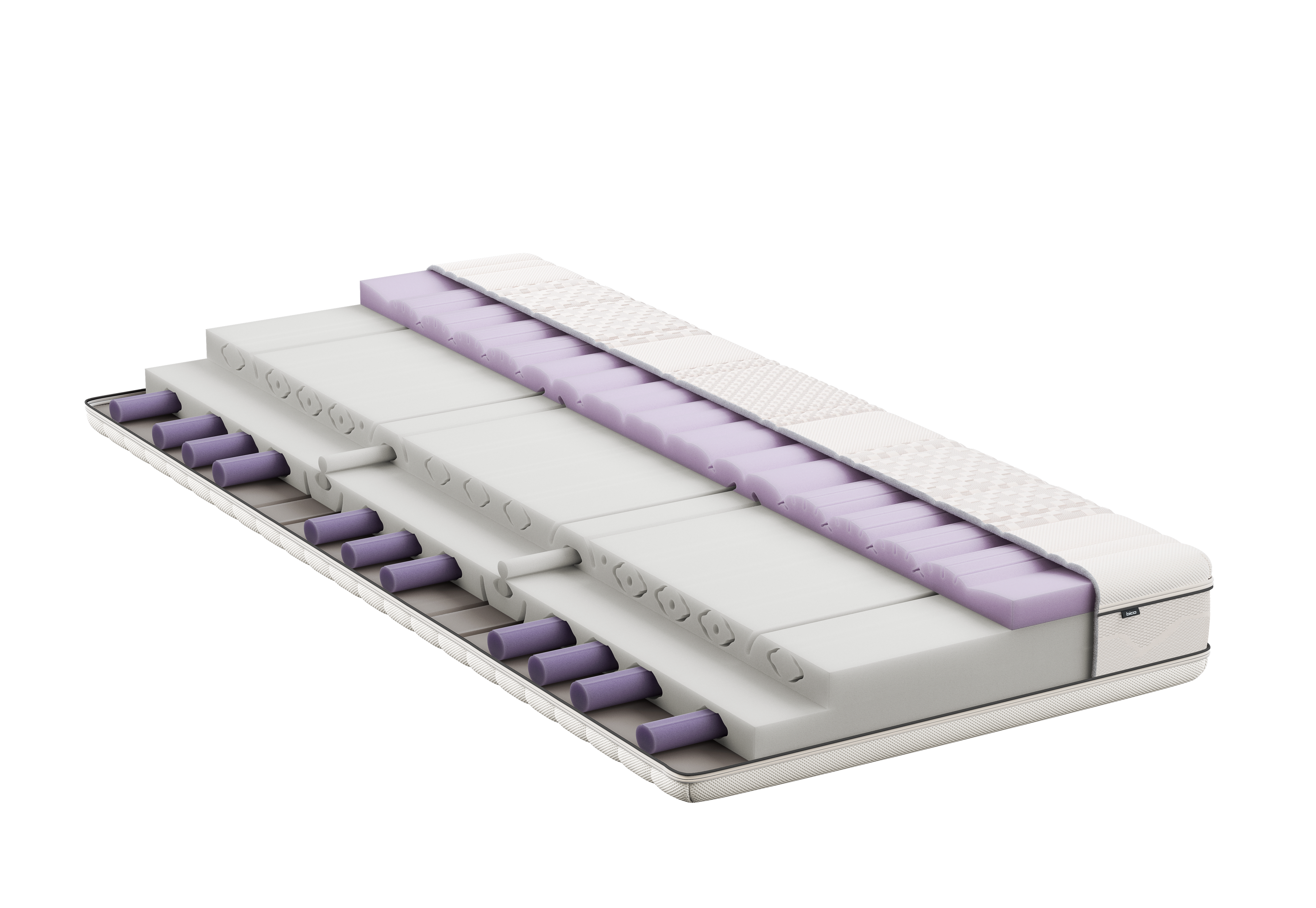 - Tissu supérieur : tissu Zoned BodyZone avec élasthanne et protection contre les acariens Sensity TM 60 % polyester, 38 % tencel, 2 % élasthanne