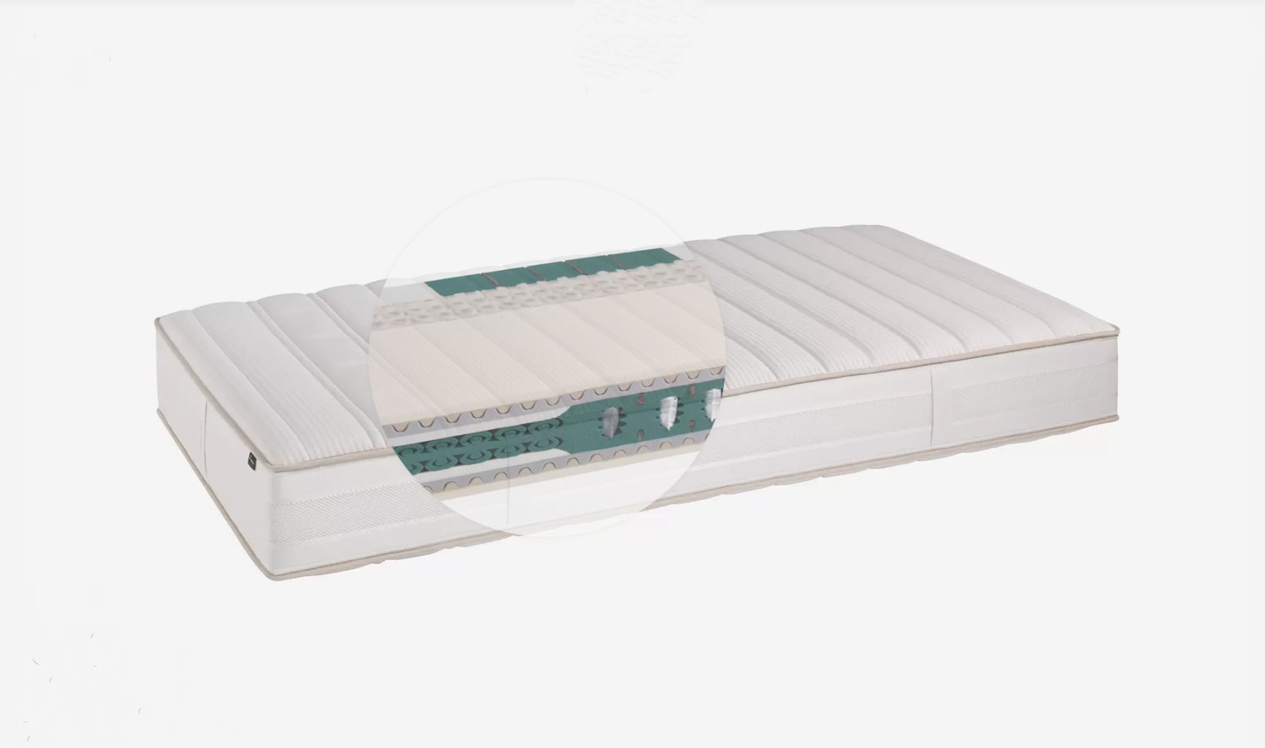 Climat du lit et longévité : la mousse Swiss Green Foam de haute qualité, en combinaison avec le système Natural Connect CS, composé de tissu tricoté swisswool et de latex Talalay, assure une puissance hygiénique particulière et une longévité du matelas.