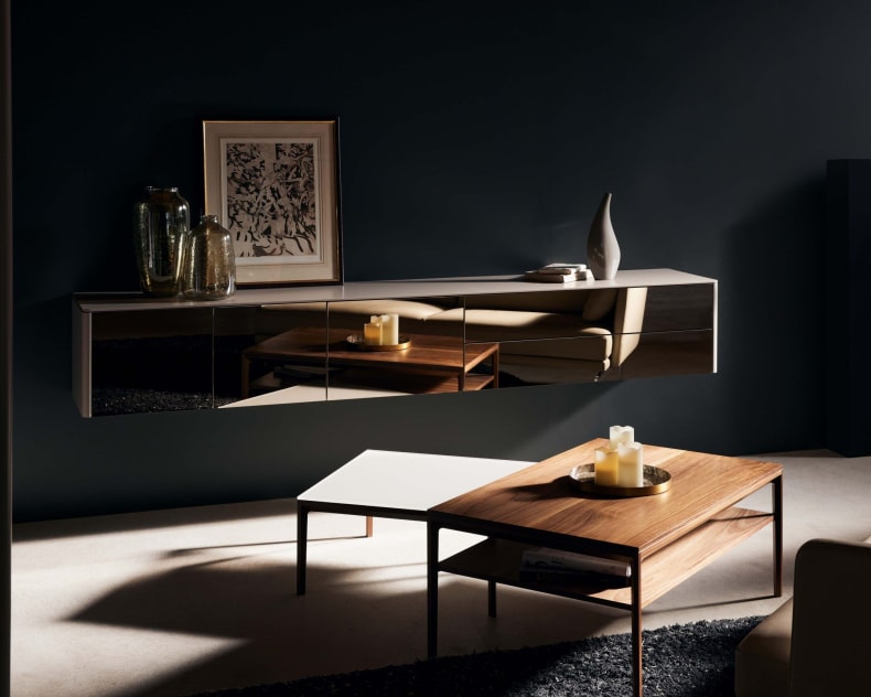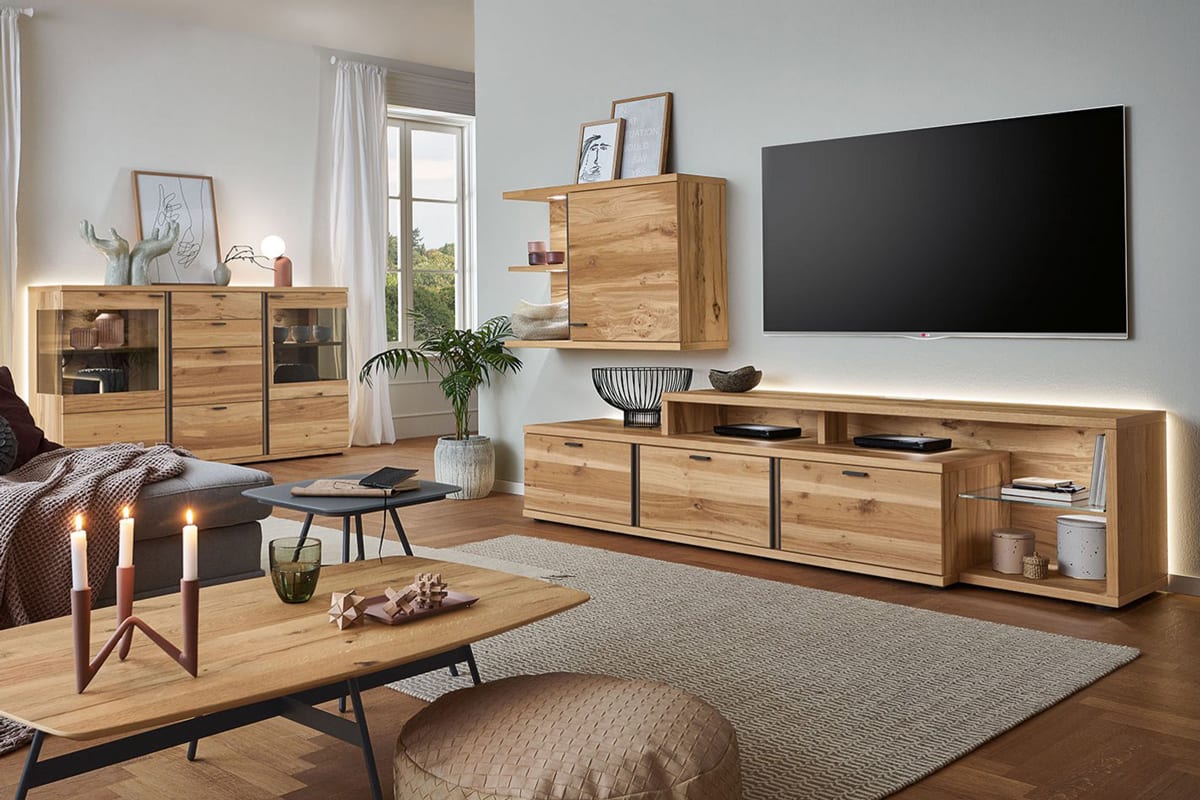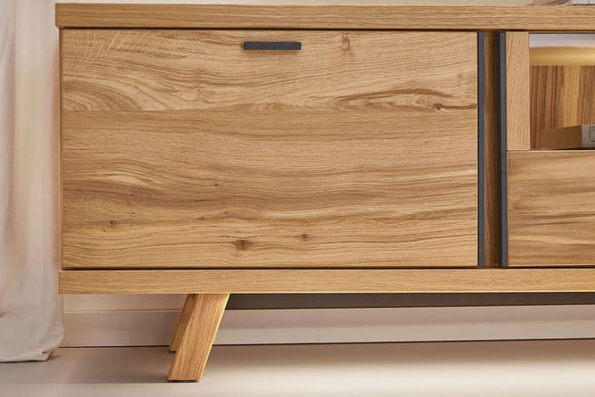 Dans le PLAN X X4 est « l’intemporel ». Le bois au grain expressif et les bandes métalliques en tant qu'éléments de design sophistiqués définissent le caractère du meuble. Le grain semble danser dans la lumière et les bandes métalliques verticales ajoutent une touche moderne qui donne à X4 Il y a également beaucoup d’espace de stockage – pour un design et une fonctionnalité optimaux. Réjouissez-vous d'une version en chêne rustique huilé clair, d'une bande métallique anthracite ainsi que d'une lumière LED et de tiroirs à fermeture amortie et à fermeture automatique.