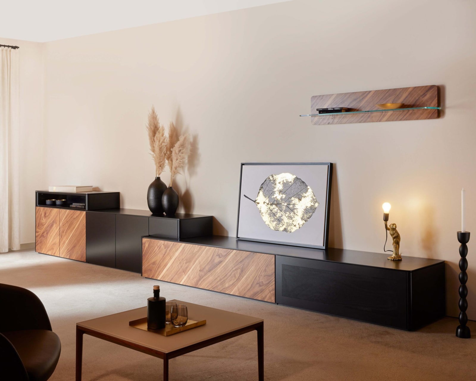 Les lignes claires et les matériaux de haute qualité confèrent à cette combinaison d'habitation un aspect luxueux. Avec différentes combinaisons de couleurs et de matériaux, vous pouvez adapter la Ronda à votre style de vie. Les solutions de rangement intelligentes et les fonctions pratiques garantissent une utilisation optimale de l'espace disponible. Découvrez les diverses possibilités que vous offre la combinaison de vie Ronda et laissez-vous enchanter par son charme intemporel.