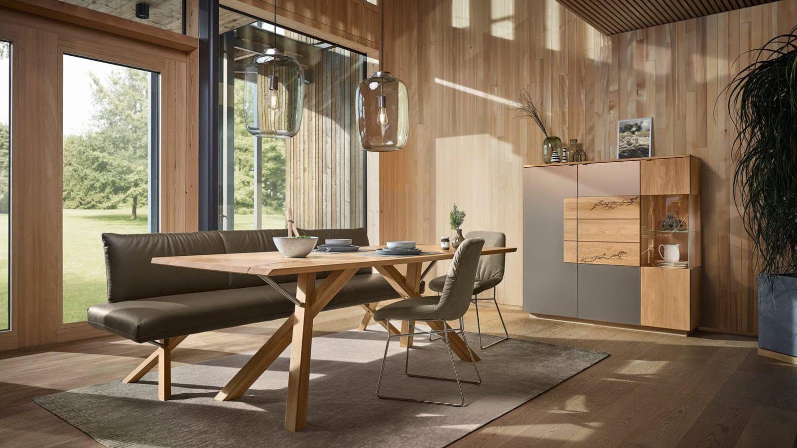 Avec son chêne noueux brillant et ses sources lumineuses intégrées, l' SIGNATURA de Wimmer contribue à la tendance vers des concepts de vie ouverts et lumineux. Les façades ouvertes sont disponibles en élégants vitraux satinés et en bois massif de haute qualité.