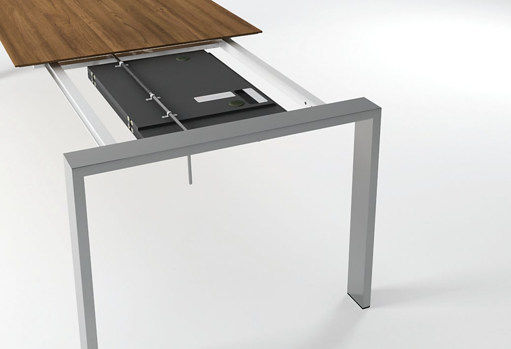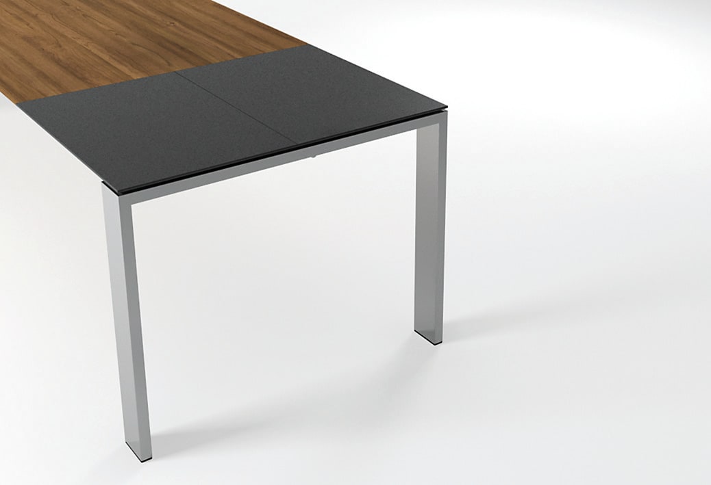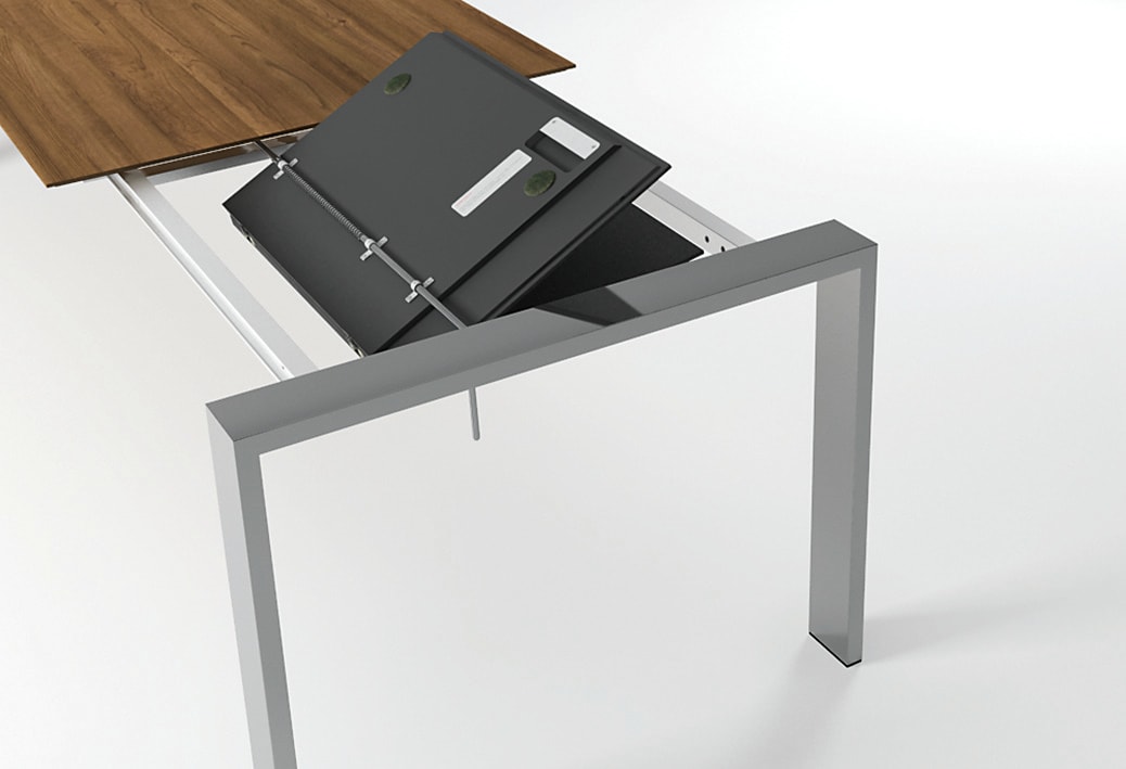 Le plateau, légèrement en retrait par rapport au cadre angulaire, confère à MALEO une sophistication discrète. L'association des matériaux, des textures et des couleurs lui permet de se fondre discrètement dans le décor ou d'affirmer une présence assumée, selon vos envies.