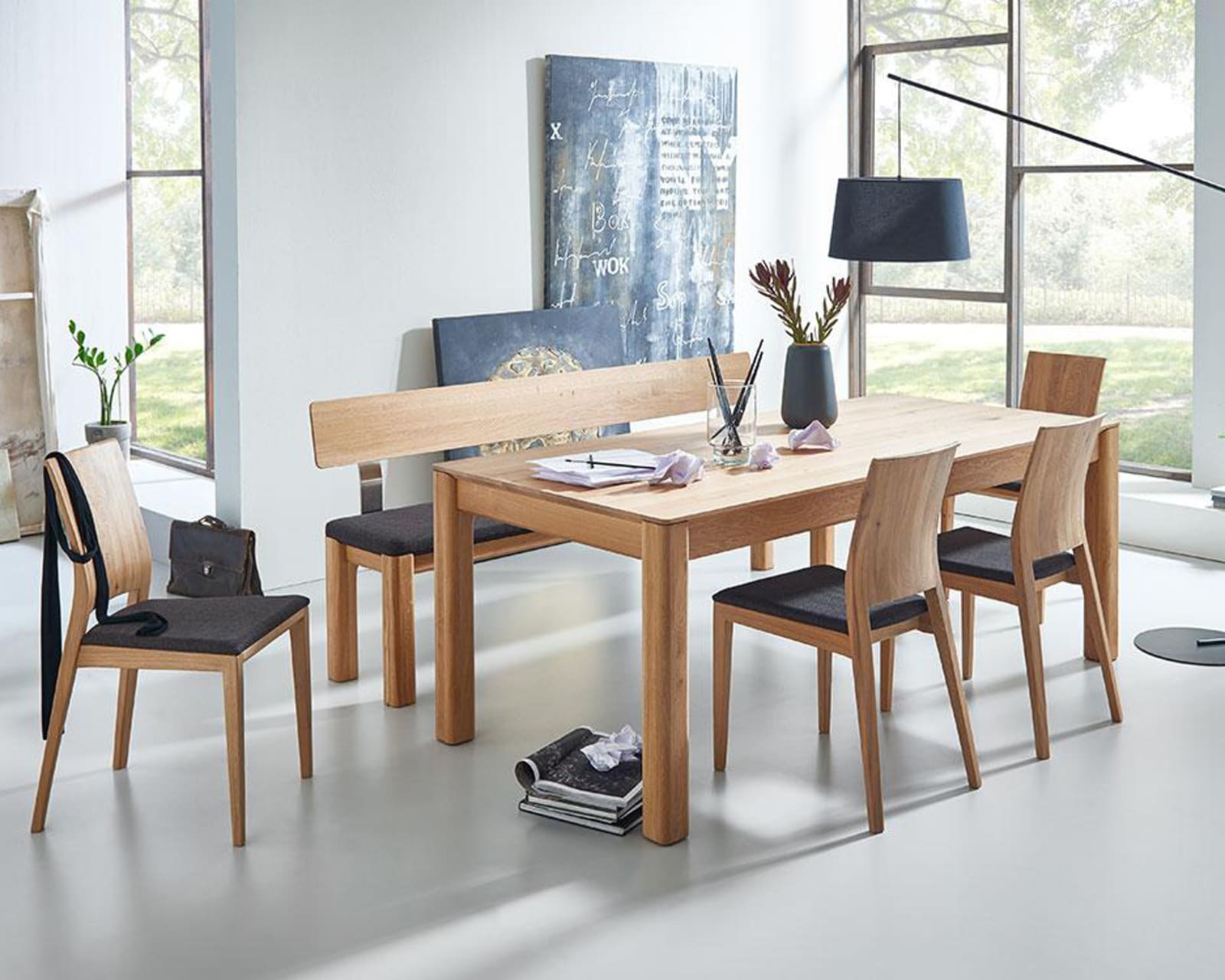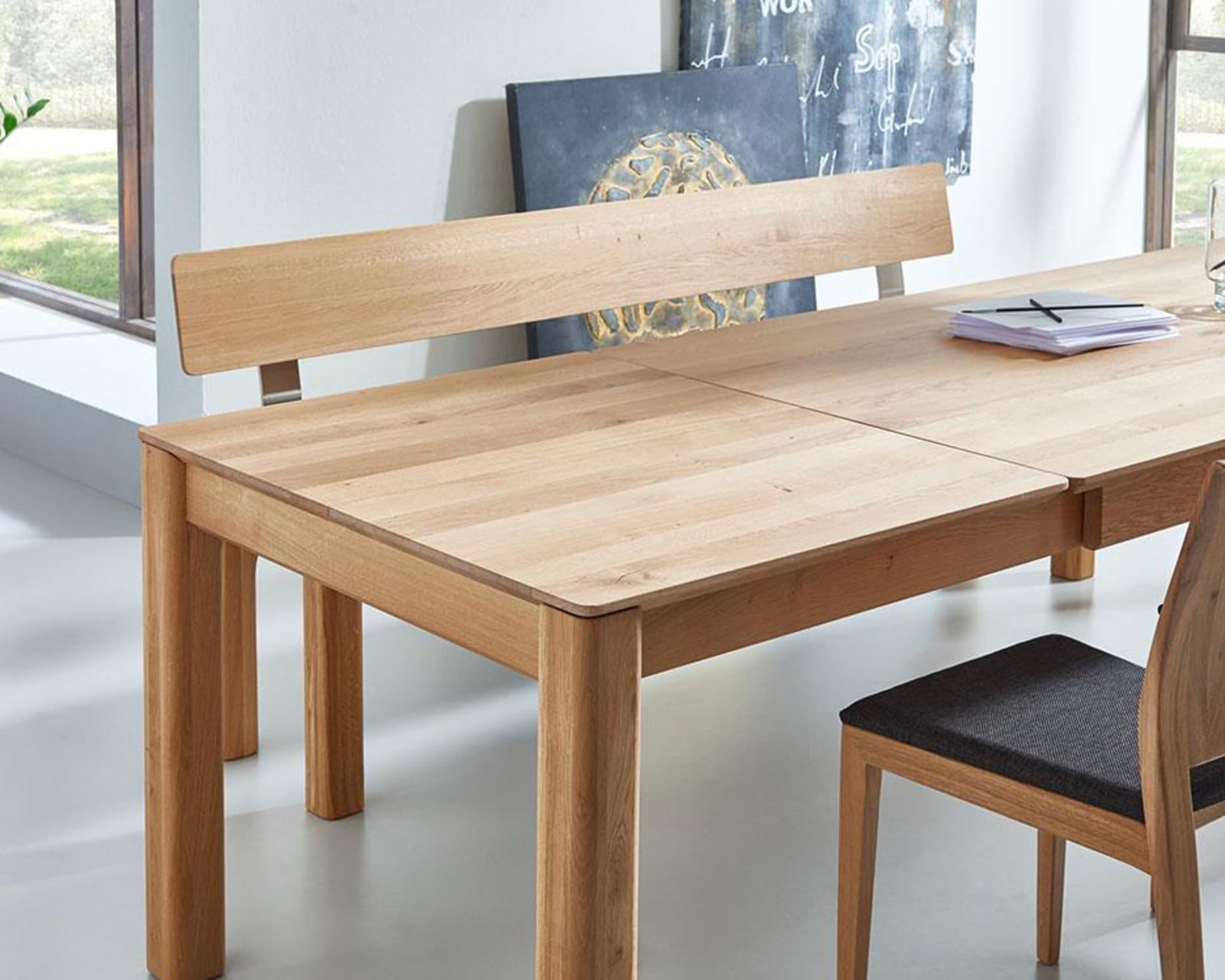 Découvrez la beauté naturelle du chêne noueux rustique et du bois massif de haute qualité Naru Cette table rectangulaire offre suffisamment d'espace pour votre famille et vos invités. La surface du plateau et des pieds de la table est huilée, ce qui crée non seulement un aspect attrayant, mais offre également une sensation agréable. Grâce à l'extension du cadre F3, la table peut être rallongée rapidement et facilement, lui permettant de s'adapter parfaitement à vos besoins.