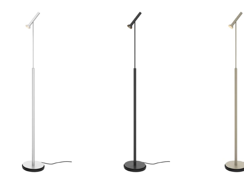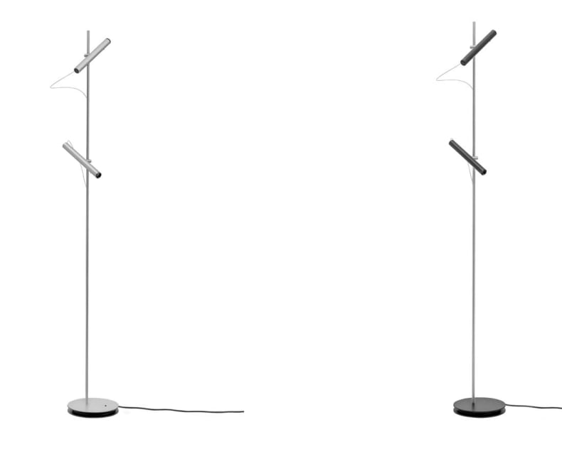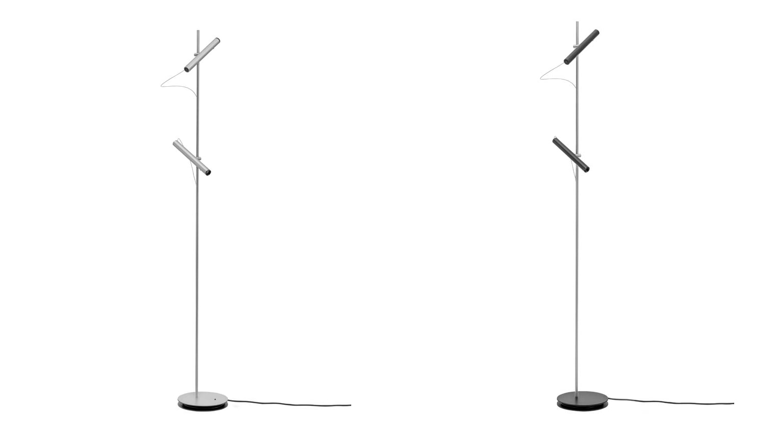 Die zwei Leuchtenköpfe können einzeln geschaltet und gedimmt werden. Sie lassen sich entlang des Gestänges verschieben und frei richten. Ob Kunstwerk oder Bücherwand – Objekte werden gezielt in Szene gesetzt, da die Stehleuchte über einen variablen Ausstrahlwinkel verfügt. Gleichzeitig erzeugt sie ein optimales, blendfreies Leselicht. Dazu wird der untere Kopf fokussiert gerichtet, während der obere Leuchtenkopf den Raum mit seinem sanften indirekten Licht bespielt.