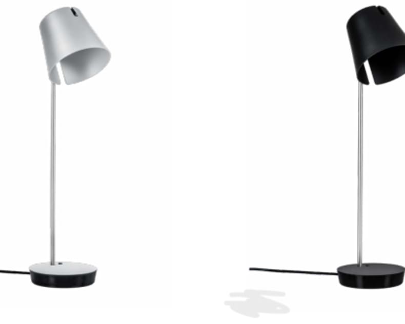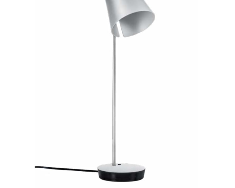 Aufgeklappt überrascht die kleine Leuchte ZETT mit hellem, brillantem Licht. Auf den Tisch gestellt