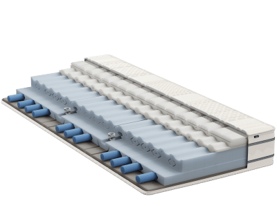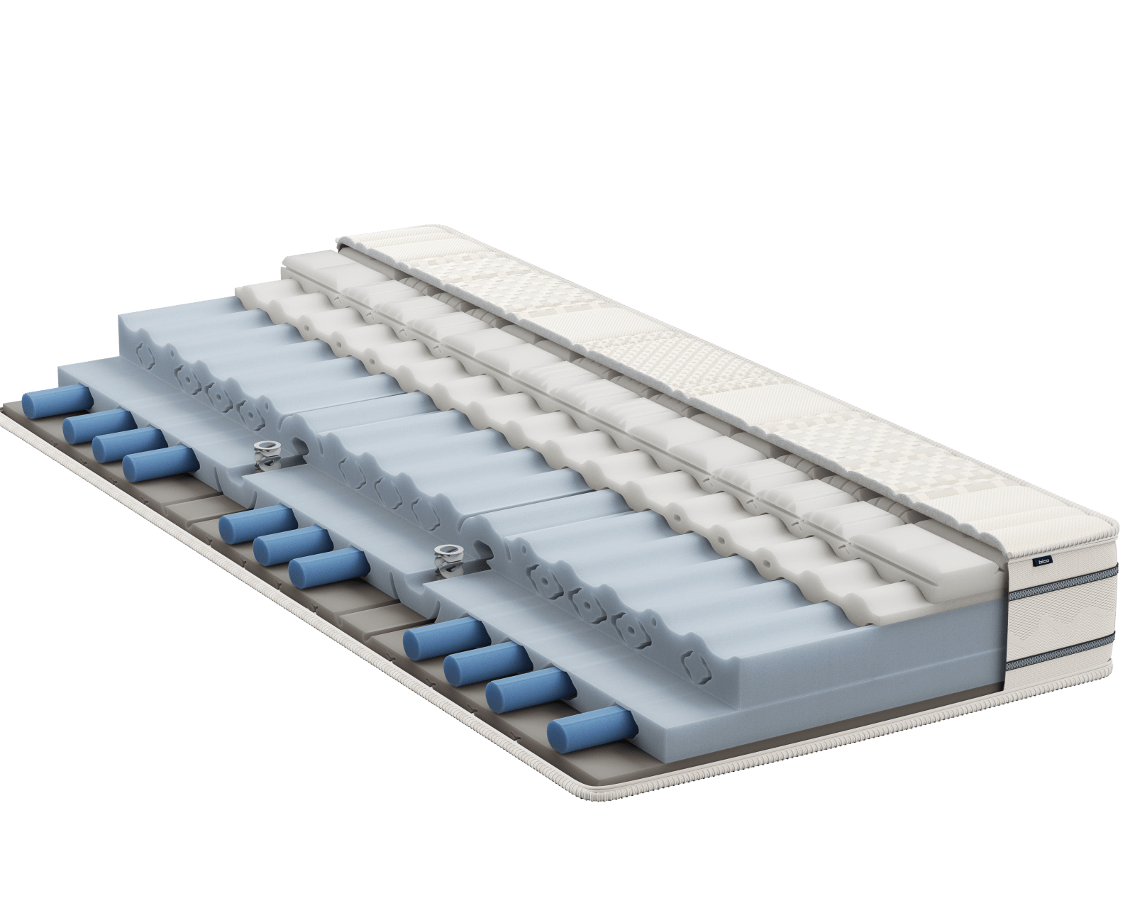 - Liegefläche: EvoPoreHRC mit Drehgelenkmodulen und ViscoAir auf ganzer Liegefläche
