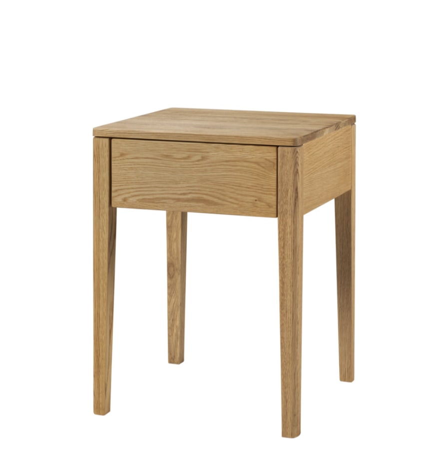 Das markante Merkmal des Chilly Nachttischs sind seine langen, eleganten Beine, die sich optisch bis zur oberen Ablagefläche erstrecken. Diese Form verleiht dem Nachttisch eine gewisse Leichtigkeit und Eleganz, während das Massivholz für Stabilität und Beständigkeit sorgt. Dank der Schublade mit Soft-Close-Funktion wird ausreichend Stauraum für persönliche Gegenstände geboten. Die Soft-Close-Funktion sorgt dafür, dass die Schublade sanft und leise schliesst – kein lästiges Klappern oder laute Geräusche mehr.