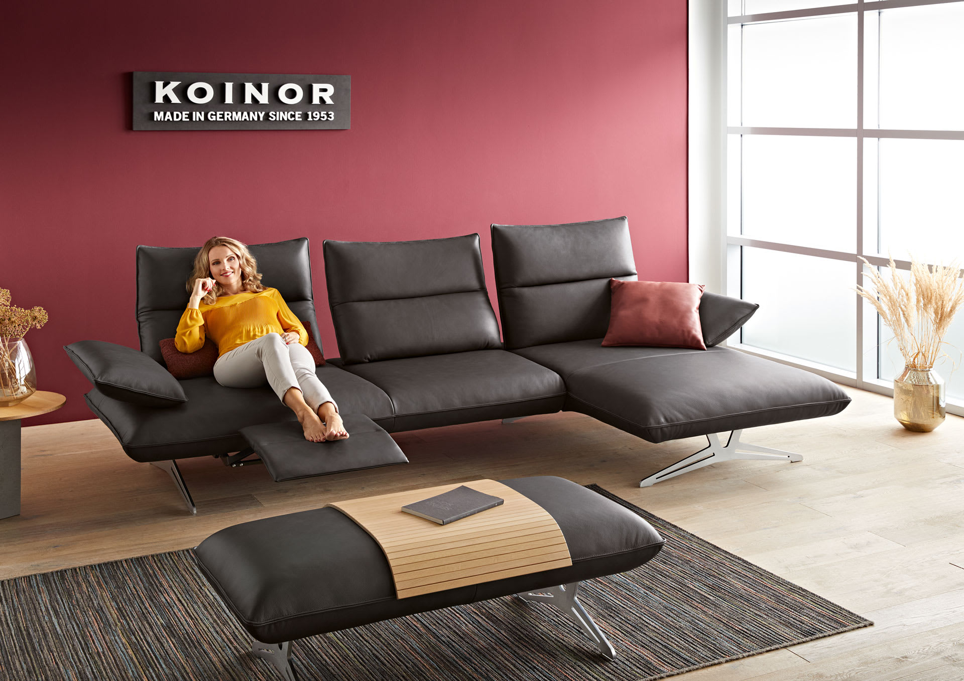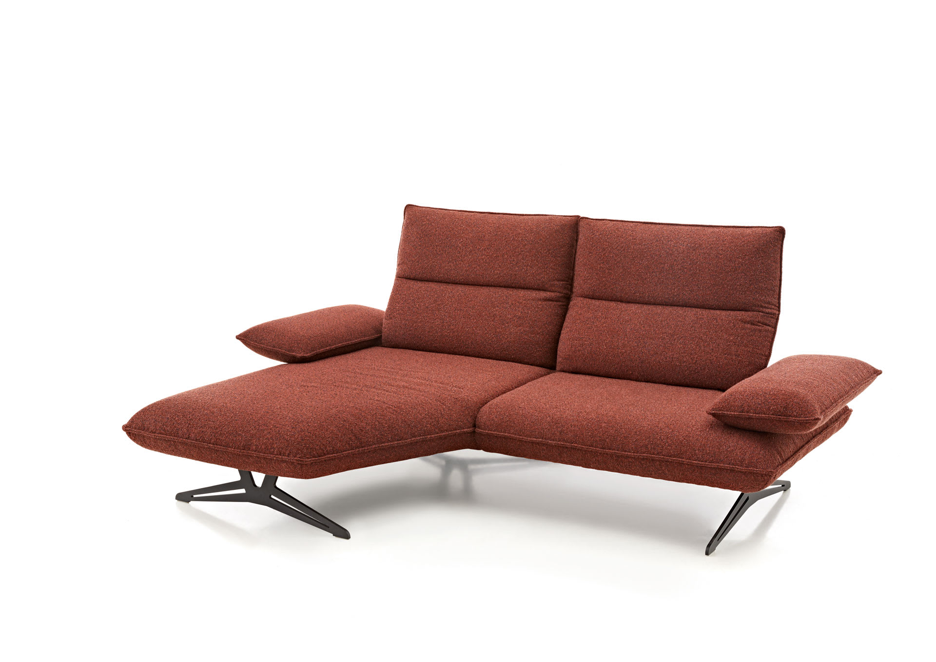 CAIO wirkt attraktiv und lebendig. Scheinbar locker aufgelegte Armteil-Kissen verleihen CAIO zudem eine einmalig leichte Anmutung. Form und Funktion charakterisieren dieses Sofa. Armteil- und Sitztiefenverstellung, Rückenneigung sowie die optionale Fußstütze verwandeln das schicke Sitzmöbel im Handumdrehen in eine komfortable, üppige Relaxfläche.