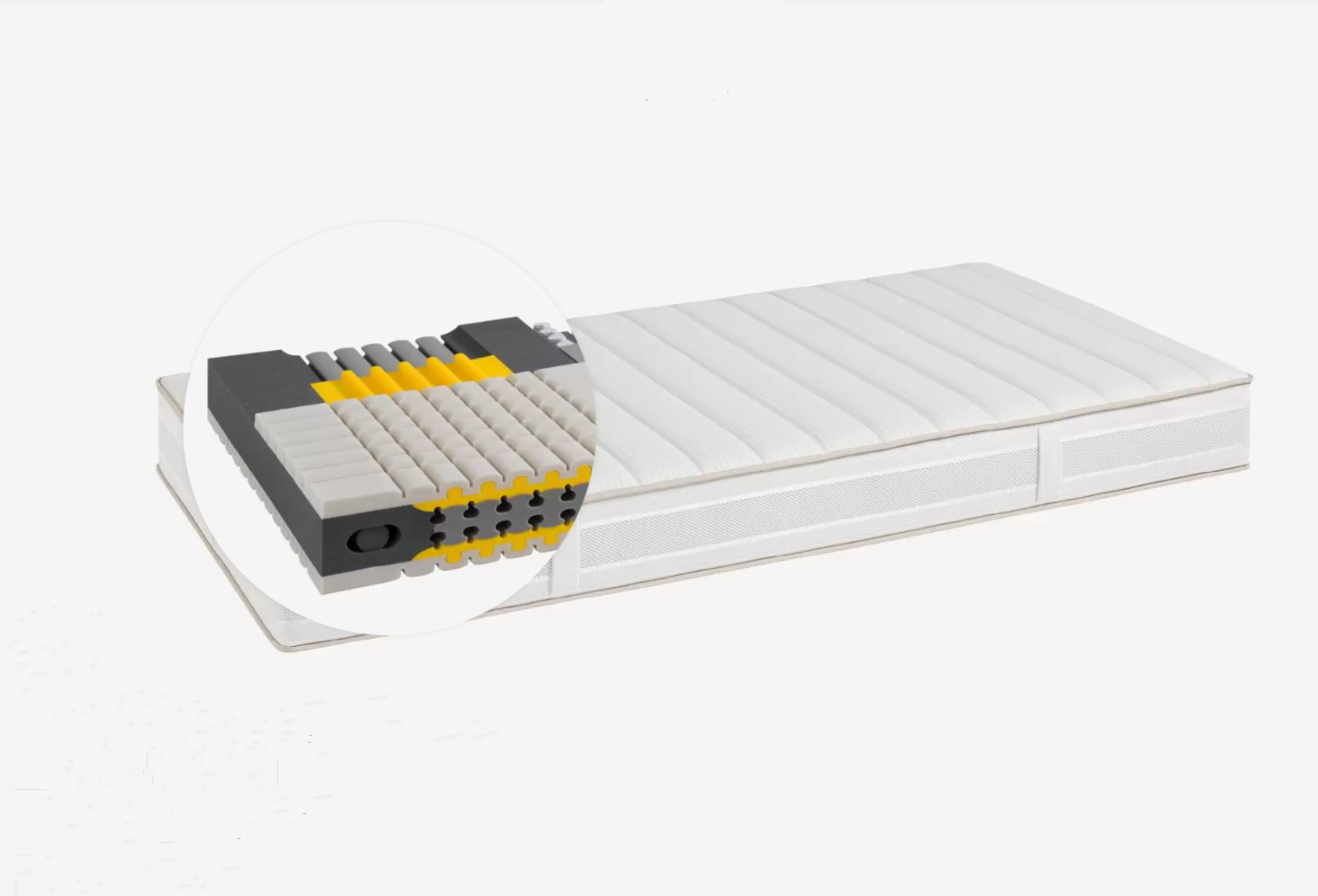 Bestehend aus dem einzigartigen AirBox-System (ABS), mit aktiven, thermisch vergüteten Federn, in Vliestaschen und Isolations-Box.
