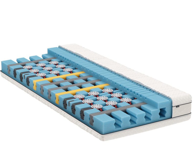 Bestehend aus dem einzigartigen AirBox-System (ABS), mit aktiven, thermisch vergüteten Federn, in Vliestaschen und Isolations-Box.