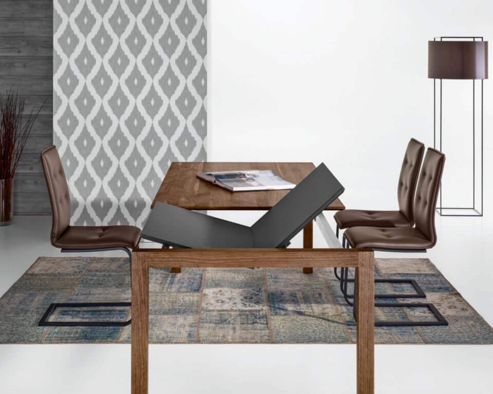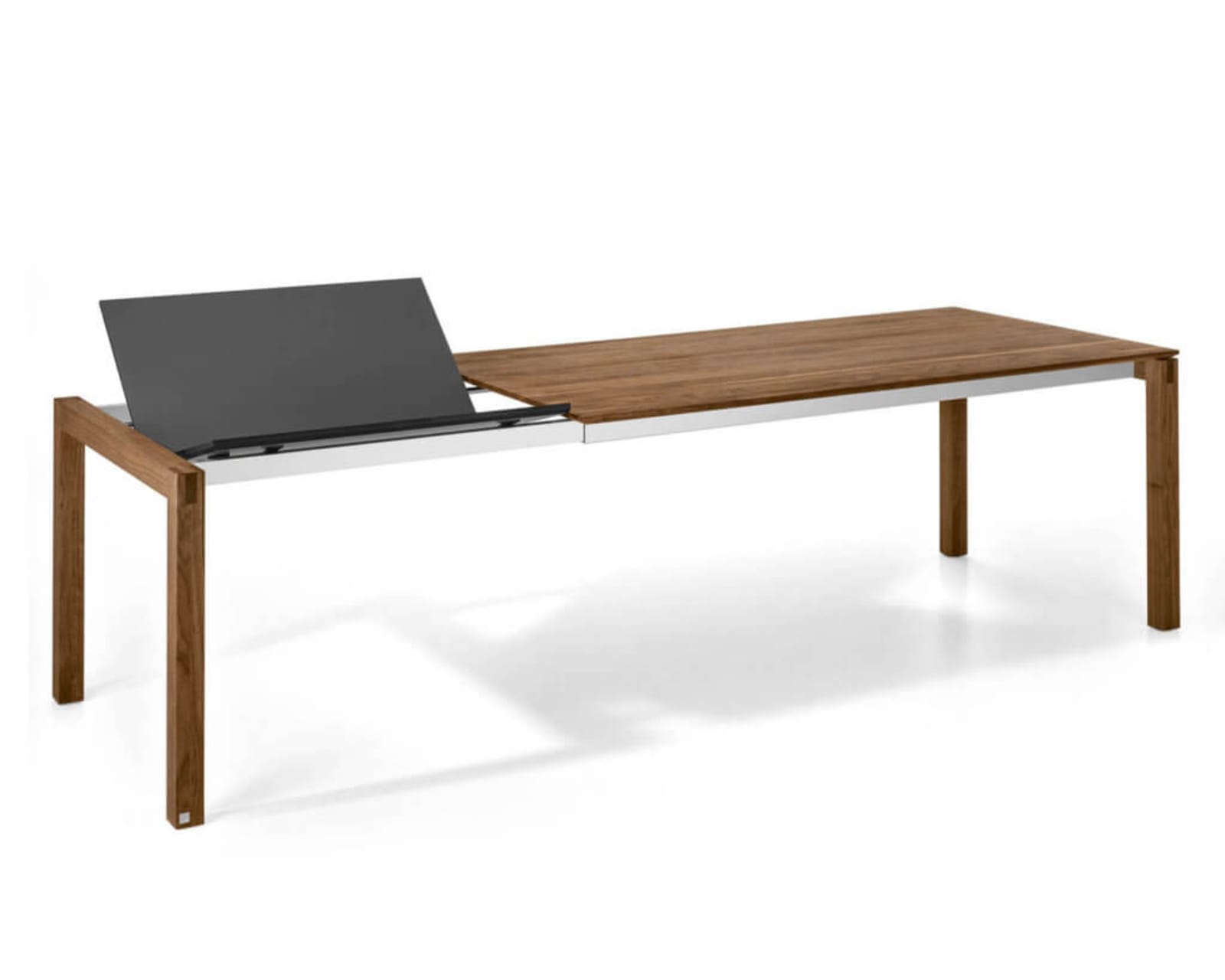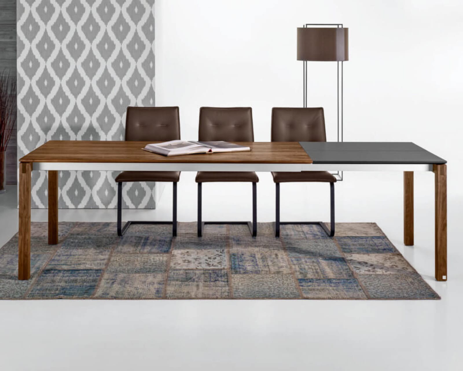 Die feine rechteckige Tischplatte des Ligna’s kann zu verschiedenen Fussformen kombiniert werden. Ob quadratisch, rechteckig, delta- oder trapezförmig, der Tisch wird zu Ihrem persönlichen Unikat. Die Materialvielfalt bei Tischplatte und Fuss lässt praktisch keine Wünsche offen. Die Tische der Kollektion dine@home erhalten Sie als Fixtisch oder als Auszugstisch mit integrierter Klappeinlage. Die vereinfachte Variante des Easy-Slide-Auszuges lässt einen attraktiven Preiseinstieg zu, ohne dabei Abstriche in der Bedienerfreundlichkeit zu machen.