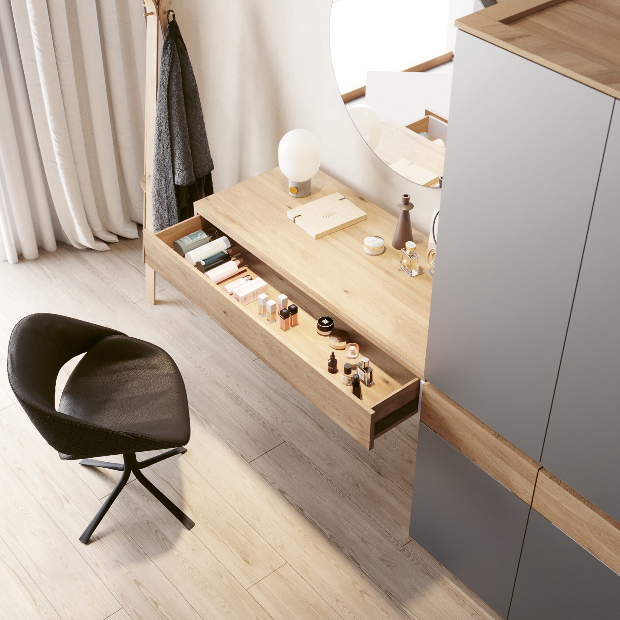 - Mit Schminktisch links inkl. Schublade